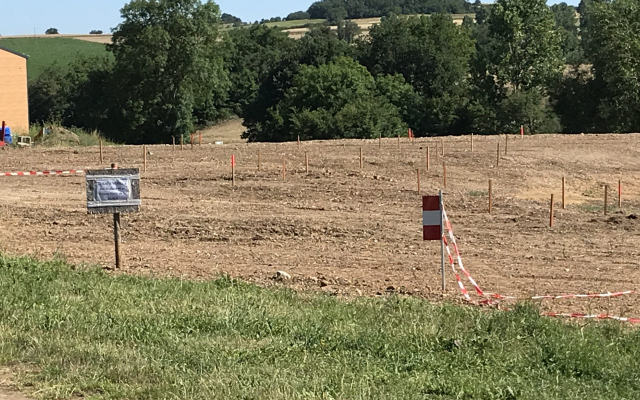 <===L’entreprise CDE au travail le long de la route départementale et dans le champ d’un particulier.