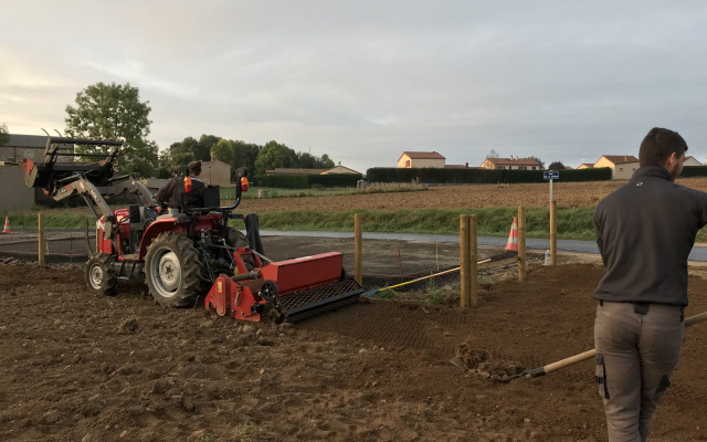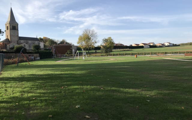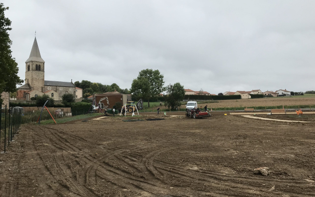 L’entrepris COLAS a débuté les travaux au printemps . Il a fallu d’abord terrasser puis rapporter de la terre végétale. En parallèle ont été crées les allées. Puis les jeux ont été posés . Après quelques péripéties, les paysagistes sont intervenus afin d’implanter d’abord l’herbe, puis en novembre les arbres et arbustes.